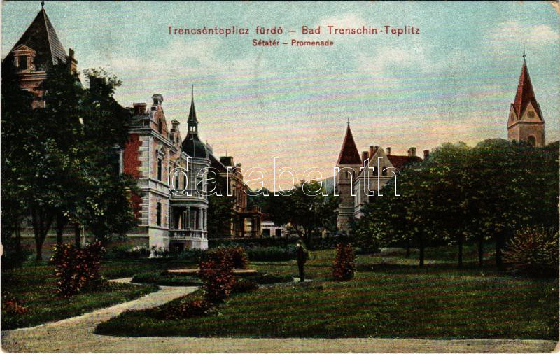 1907 Trencsénteplic, Trencianske Teplice; sétatér, templom. Wertheim Zsigmond kiadása / promenade, church (EK)