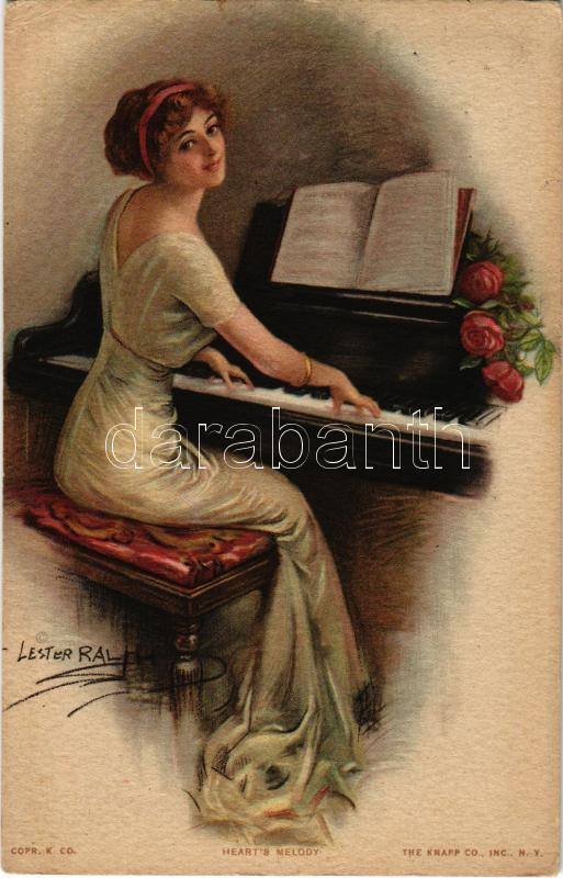 1914 Zongorázó hölgy. Paul Heckscher No. 1026-5. / Heart's Melody, lady playing piano art postcard s: Lester Ralph (EK)
