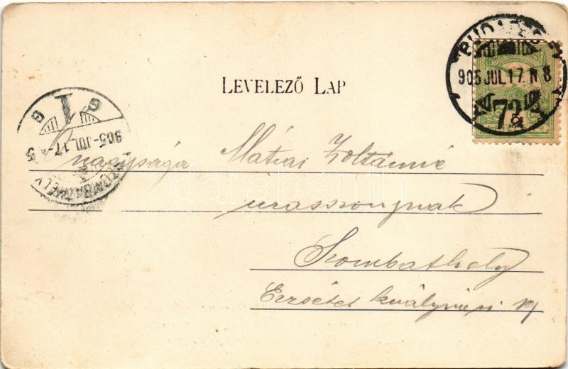 1905 Budapest XIV. Városliget, Wampetics F. vendéglője, étterem kerthelyisége pincérekkel (kopott sarkak / worn corners)