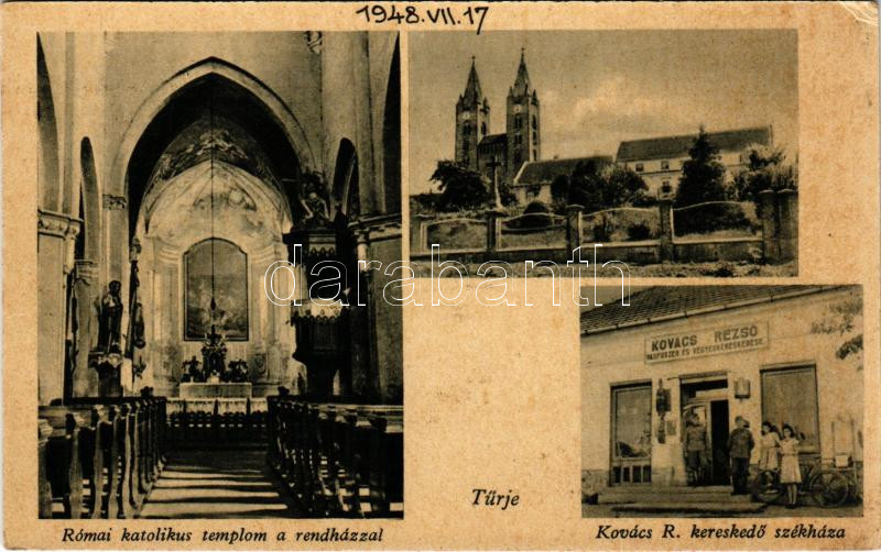 1948 Türje (Zala), Római katolikus templom belső és rendház, Kovács R. kereskedő üzlete és saját kiadása (EK)