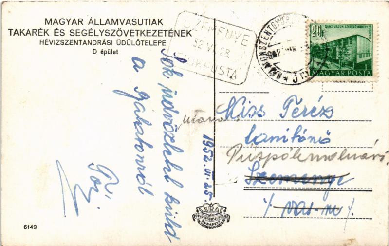 1952 Hévízszentandrás (Hévíz), Magyar Államvasútiak Takarék- és Segélyszövetkezete üdülőtelepe, D épület + "SZEMENYE FIÓKPOSTA"