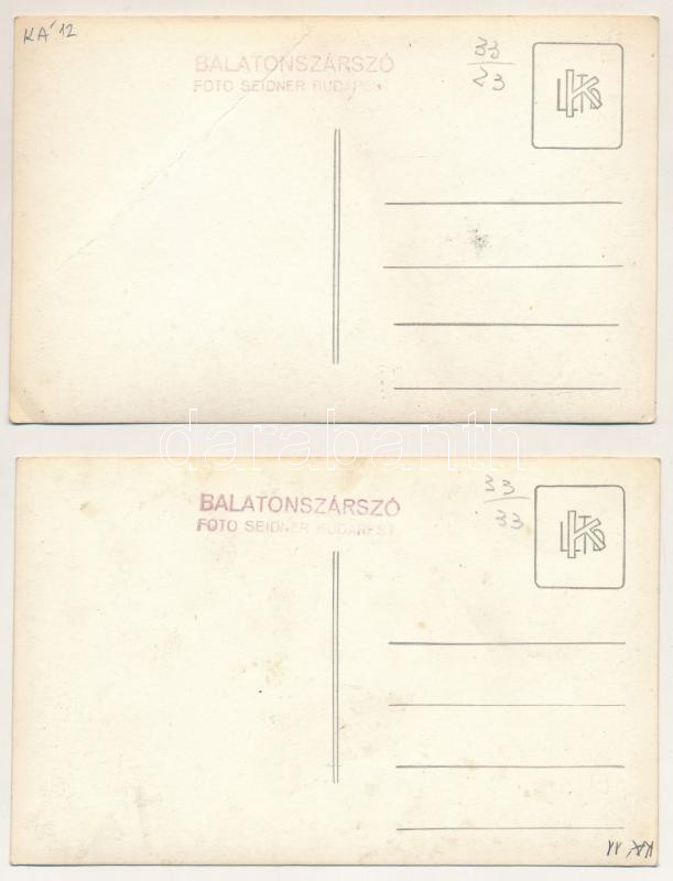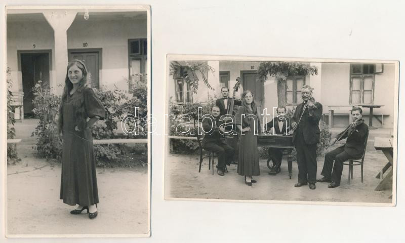 Balatonszárszó, Szárszó - 2 db RÉGI fotós képeslap: népi zenekar a ház udvarán, énekesnő. Seidner photo