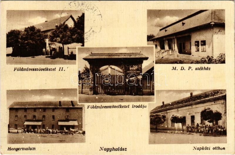 Nagyhalász, MDP székház, Földmívesszövetkezet irodája, Hengermalom, napközi otthon (EK)