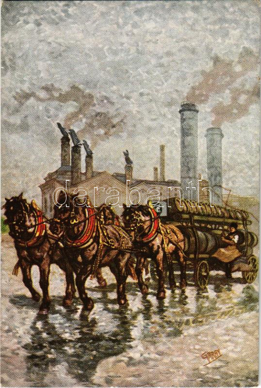 Budapest X. Kőbánya, Dreher Antal Serfőzdéi és Baksöre, sörgyár reklámlap / Hungarian brewery and beer advertising art postcard s: Garay