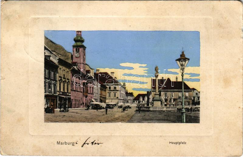 1911 Maribor, Marburg a. D.; Hauptplatz, Möbel Lager, Zahnarzt / main square, shop of K. Pichler, dentist (b)