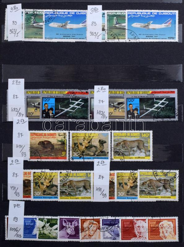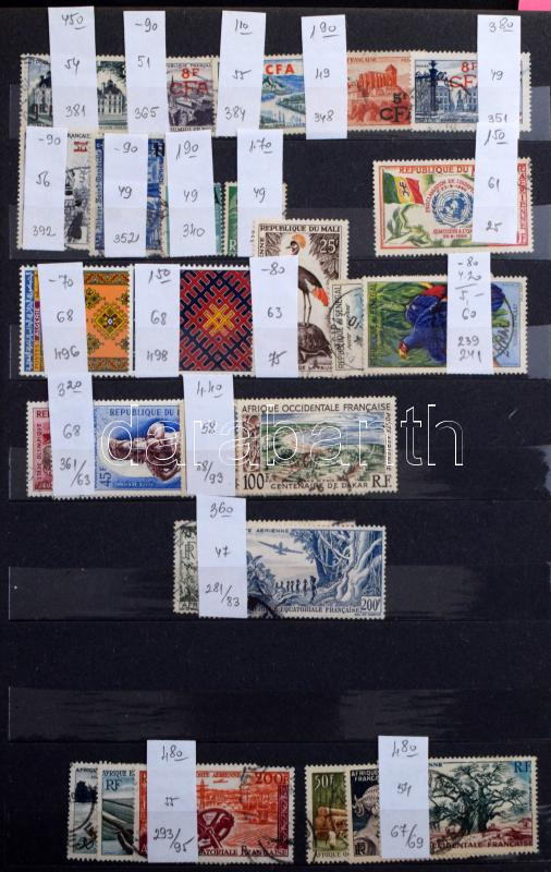 Francia gyarmatok 1970-1990 teljes sorok, értékek 10 lapos A4 berakóban, több száz darab bélyeg