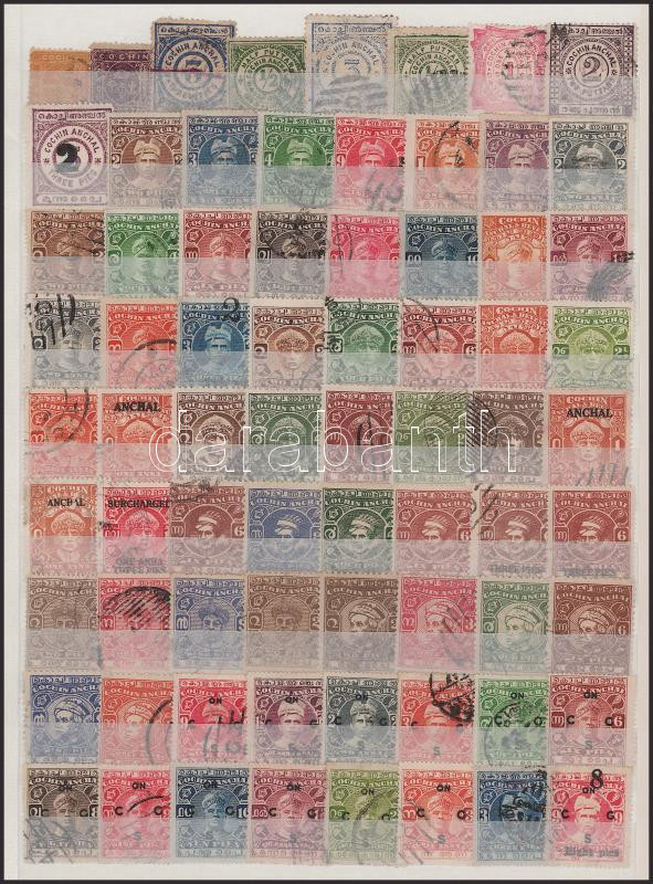 Indiai feudális állam Cochin 99 db klf bélyeg kétoldalas A4-es berakólapon