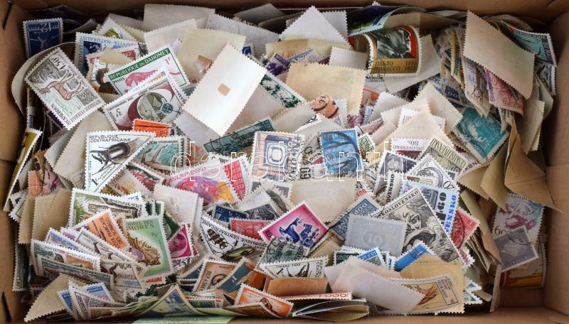 Vegyes külföldi áztatott bélyeg cipős dobozban ömlesztve