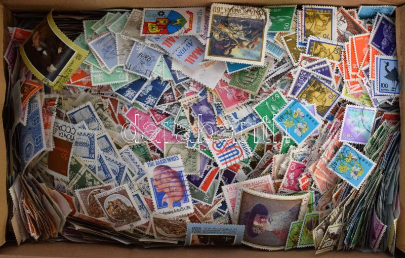 Vegyes külföldi bélyegek ömlesztve kisebb cipősdobozban