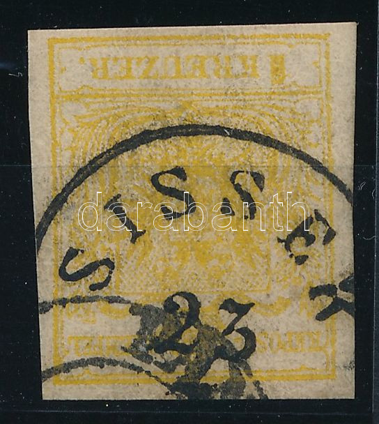 1850 1kr MP III kadmiumsárga, eredeti gumirészek "SISSEK" (25.000) azonosítás: Strakosch