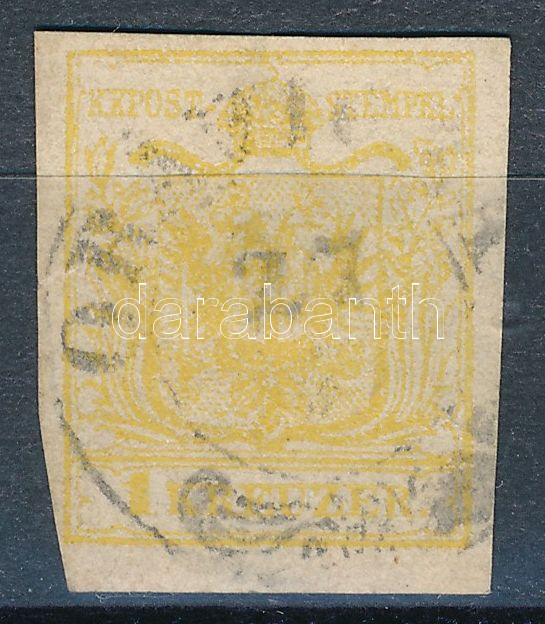 1850 1kr MP sárga, falzhell, bal oldalon pici szakadás "ORAVICZA" (25.000)