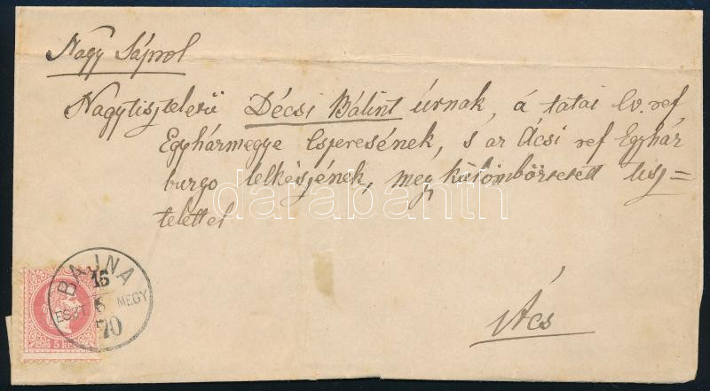 1870 5kr levéle "BAJNA ESZT. MEGY." (Gudlin 600 pont) - Ács