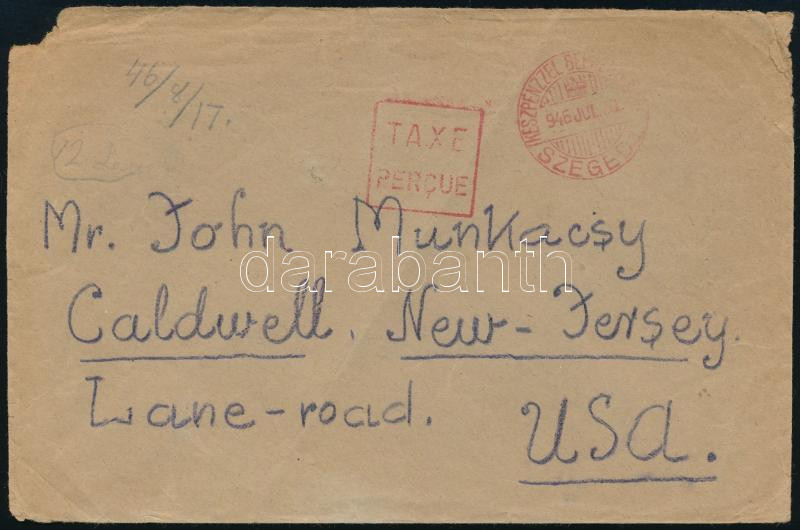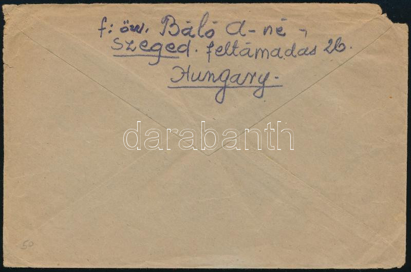 1946 26. díjszabás Levél Szegedről az USA-ba készpénz bérmentesítéssel