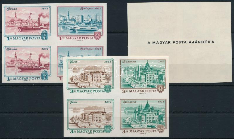 1972 Óbuda-Buda-Pest polgármesteri ajándék vágott négyestömbök (150.000) / Mi 2805-2810 imperforate blocks of 4, present of the post (2Ft, 3Ft betapadás / gum disturbance)