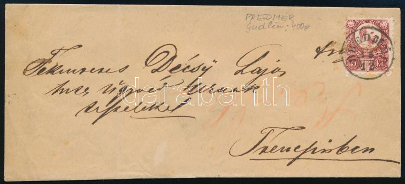 ~1871 Levél Réznyomat 5kr bérmentesítéssel, " PREDMÉR" - "TRENCSÉN" (Gudlin 400 p)