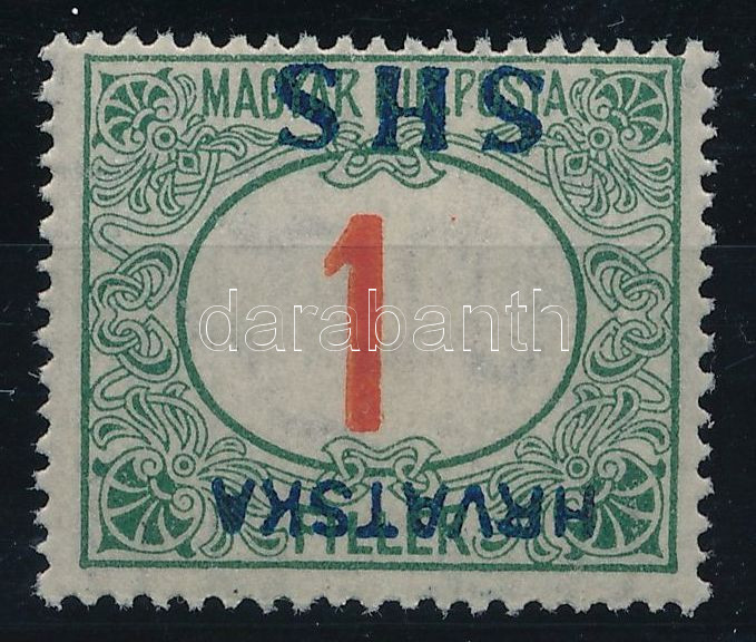 SHS 1918 Portó 1f fordított felülnyomással, Bodor vizsgálójellel