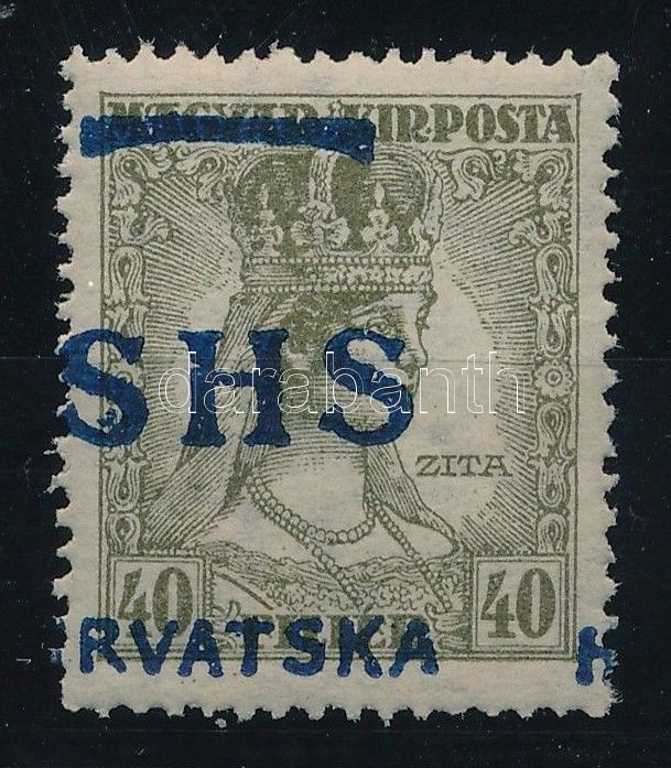 SHS 1918 Zita 40f eltérő Arató típusú, elcsúszott felülnyomással, Bodor vizsgálójellel