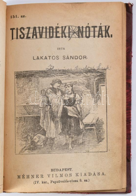 15 elbeszélés Méhner Vilmos kiadásában, közte Hortobágyi nóták, Tiszavidéki nóták. Félvászon kötés, kopottas állapotban.