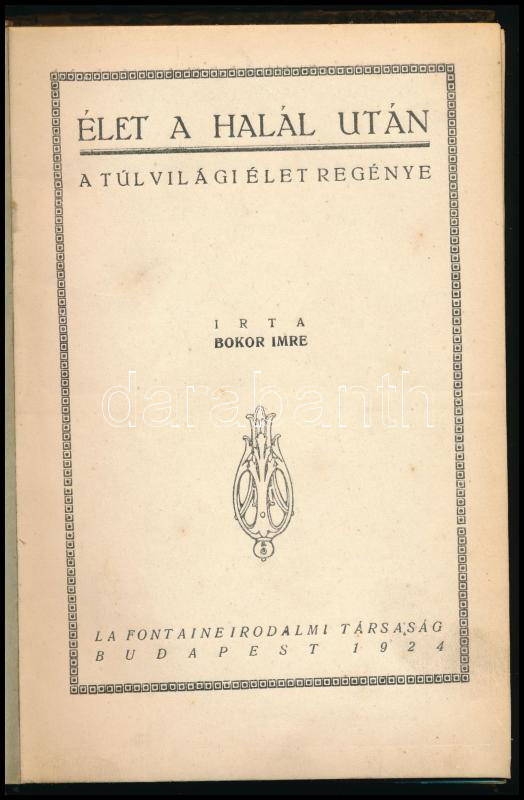 Bokor Imre: Élet a halál után. A túlvilági élet regénye. DEDIKÁLT! Bp., 1924, La Fontaine Irodalmi Társaság. Félvászon kötés, sérült gerinc.