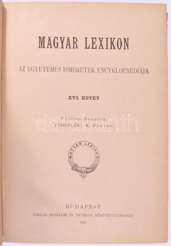 Magyar lexikon. Az összes tudományok encziklopédiája. 1-17. kötet. [A 17. kötet: Képes atlasz.] Szerk.: Somogyi Ede. Teljes sorozat. Bp., (1879-1885), Rautmann Frigyes.