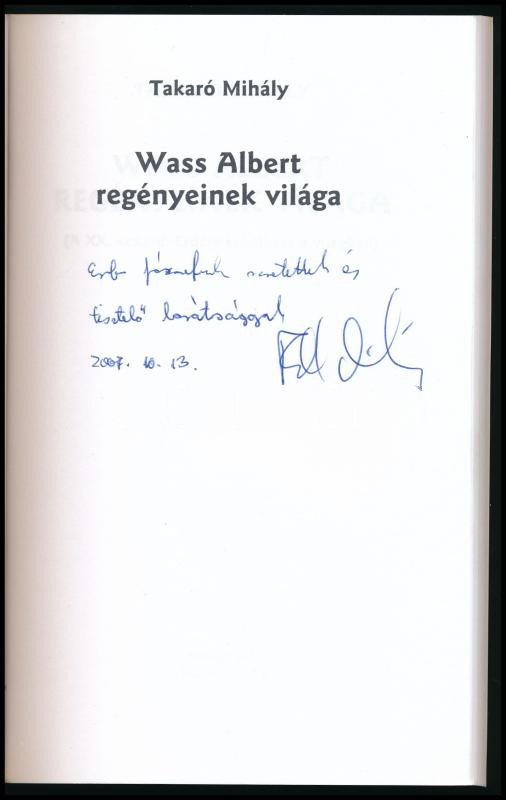 Takaró Mihály: Wass Albert regényeinek világa. DEDIKÁLT! Bp., 2004, Masszi Kiadó. 133p. Kiadói papírkötés, jó állapotban.