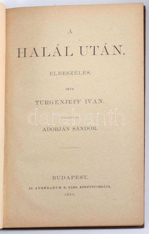 Turgenjeff (Turgenyev), Ivan: A halál után Bp, 1883. Athenaeum 102 p. ford. Adorján Sándor, korabeli egészvászon kötésben, első kiadás
