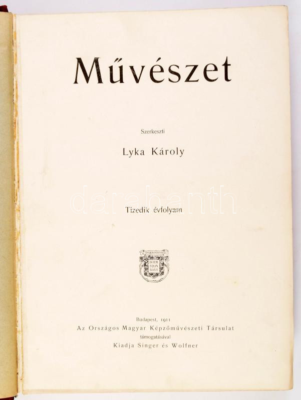 1911 Művészet. X. évfolyam. Szerk.: Lyka Károly. Bp., 1911, Singer és Wolfner,(Hornyánszky Viktor-ny.) Gazdag képanyaggal, képtáblákkal illusztrált. Átkötött félvászon-kötés, kissé kopott borítóval, az első 5 lap kijár.