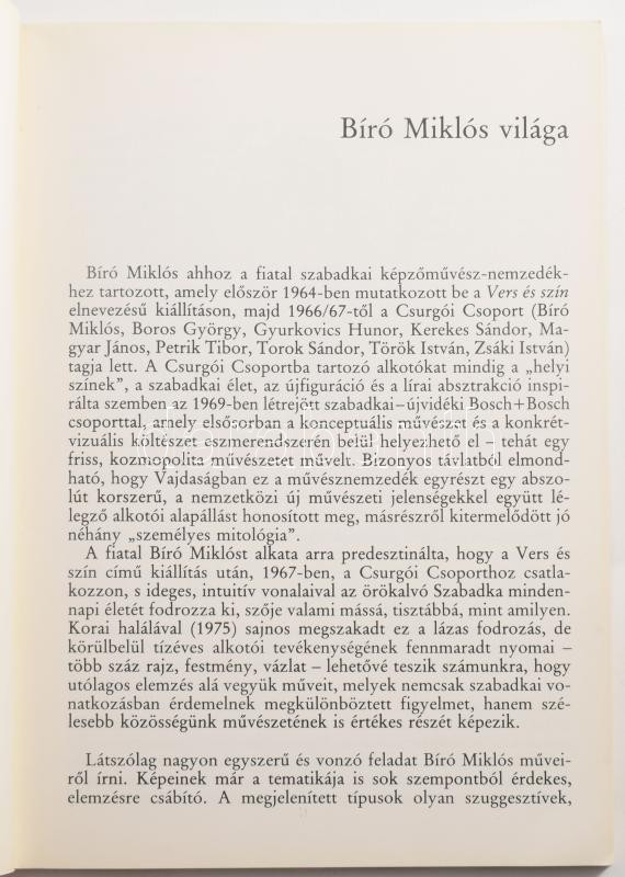 Bíró Miklós (1948-1975.) A bevezető tanulmányt írta és a képeket válogatta: Sebők Zoltán és Slavko Matkovic. Újvidék, 1984., Forum. Kiadói papírkötés.
