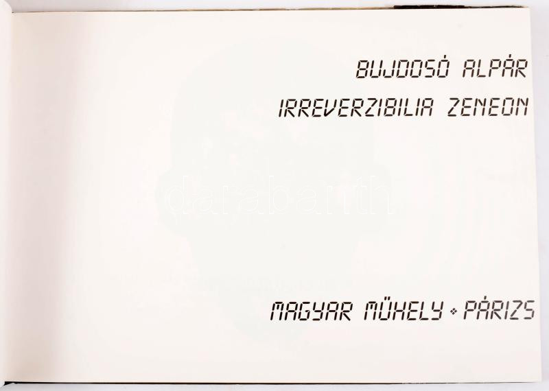 Bujdosó Alpár: Irreverzibilia zeneon. . Párizs, 1985. Magyar Műhely, Kiadói féálvászon kötésben, kissé kopott papírborítóval.