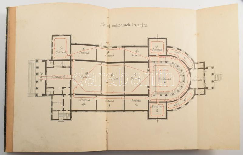 Ezredéves Országos Kiállítás 1896. A Képzőművészeti Csoport Képes Tárgymutatója. Az új Műcsarnok alaprajzával. 1896, Országos Képzőművészeti Társulat. Tulajdonosi névbejegyzéssel. Félvászon kötés, kopottas állapotban.