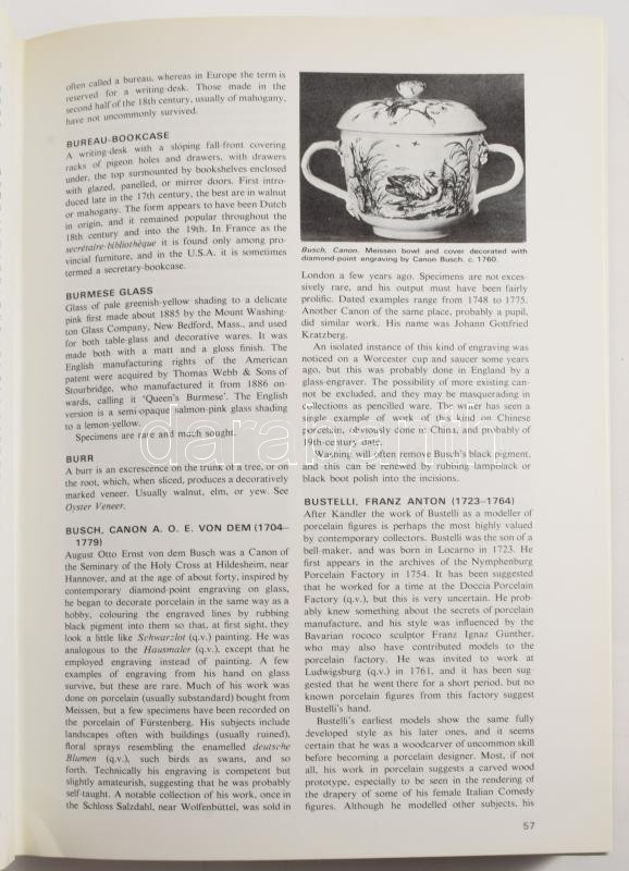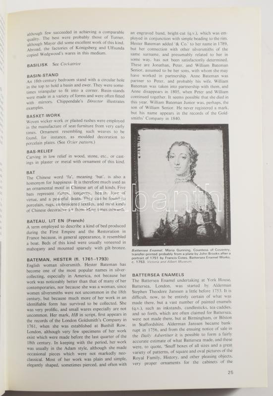 George Savage: Dictionary of Antiques. London, 1970, Barrie & Jenkins, egészvászon kötés, kiadói papÃrborÃtóval, angol nyelven. SzÃnes- és fekete-fehér képekkel, porcelán- és ezüst jelzések gyűjteményével gazdagon illusztrált kiadvány, jó állapotban.