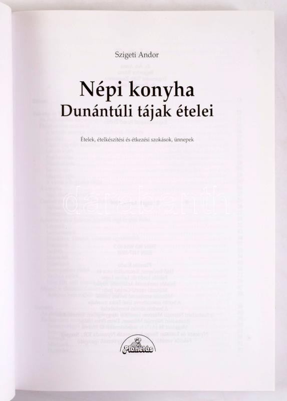 Szigeti Andor: Népi konyha. Dunántúli tájak ételei. Ételek, ételkészítési és étkezési szokások, ünnepek. Jelenlévő múlt. Bp., 1999, Planétás Kiadó, 380+[4] p. Kiadói kartonált papírkötés.
