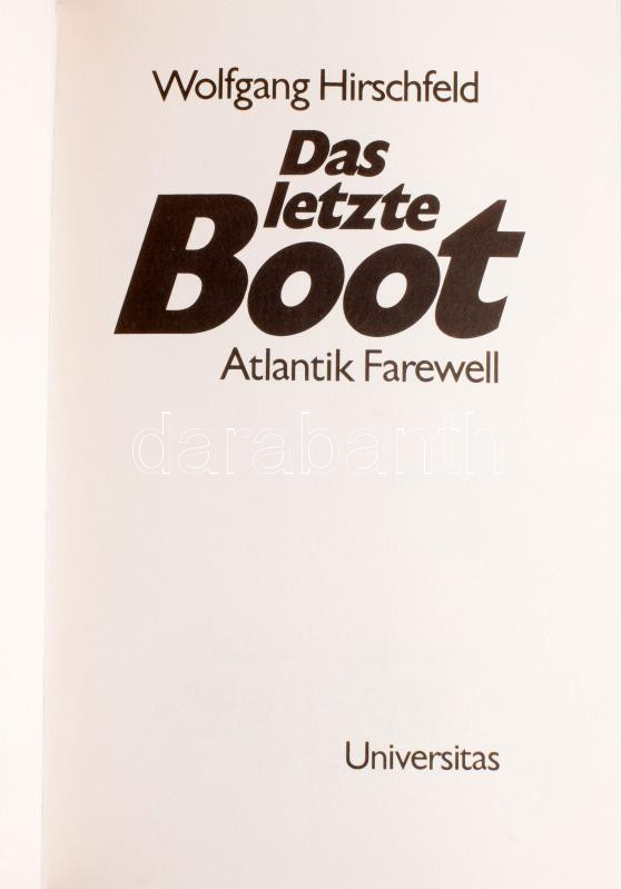 Wolfgang Hirschfeld: Das letzte Boot. Atlantik Farewell. München, 1999, Universitas. Német nyelven. Kiadói egészvászon-kötés, kiadói papír védőborítóban.