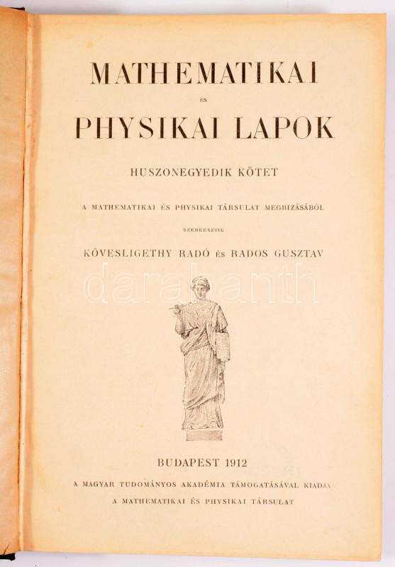 2 db matematikai folyóirat Rátz László szerk: . Kőzépiskolai mathematikai lapok. Bp., 1912. 260p., + Methematikai és physikai lapok. 21. kötet . szerj: Kövesligethy Radó és Rados Gusztáv. Bp., 1912. MTA. 404p. Korabeli félvászon kötésekben