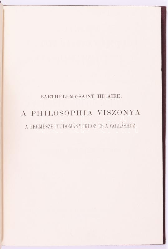 Barthélemy-Saint Hilaire: A philosophia viszonya a természettudományokhoz és a valláshoz. Fordította: Péterfy Jenő. Bp., 1890, MTA, 6+196 p. Kiadói aranyozott egészvászon-kötésben, jó állapotba. +