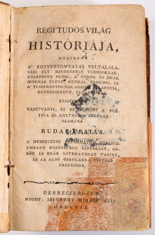 Budai Ésaiás: Régi tudós világ históriája, melybenn a' könyvnyomtatás feltalálásáig élt mindenféle tudósoknak, főképpen pedig, a' görög és deák íróknak élete, munkái, érdemei, és a' tudományoknak akkori állapotja, rendbeszedve, előadódnak.
