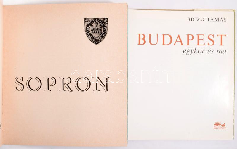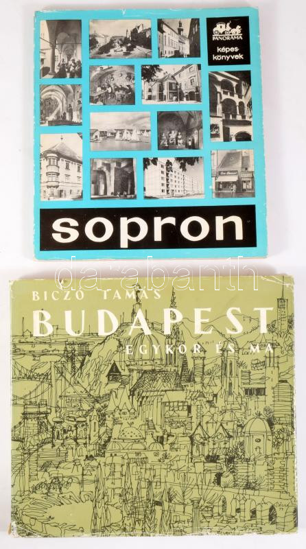 Csatkai Endre - Friedrich Károly: Sopron. Panoráma képeskönyvek. Bp., 1971, Panoráma. Fekete-fehér fotókkal illusztrálva. Kiadói papírkötés, kissé viseltes borítóval. + Biczó Tamás: Budapest egykor és ma. Bp., 1979, Panoráma. Kiadói egészvászon-kötés, kissé sérült kiadói papír védőborítóban.