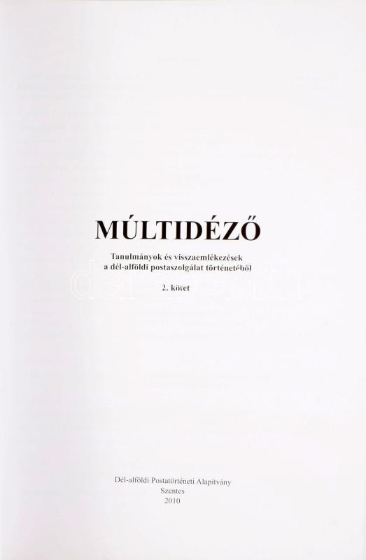 Múltidéző. Tanulmányok és visszaemlékezések a dél-alföldi postaszolgálat történetéből. 2-3. köt. Szentes, 2010-2015, Dél-alföldi Postatörténeti Alapítvány, 327+[1] p.; 399+[1] p. Kiadói papírkötés.