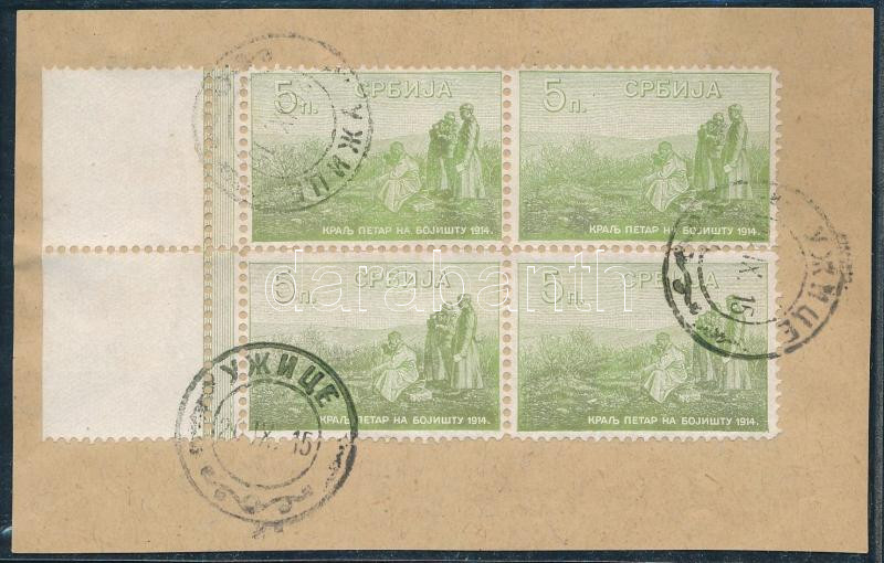 1915 Forgalmi Mi 130 ívszéli 4-es tömb, bal oldalt pici üres mezővel
