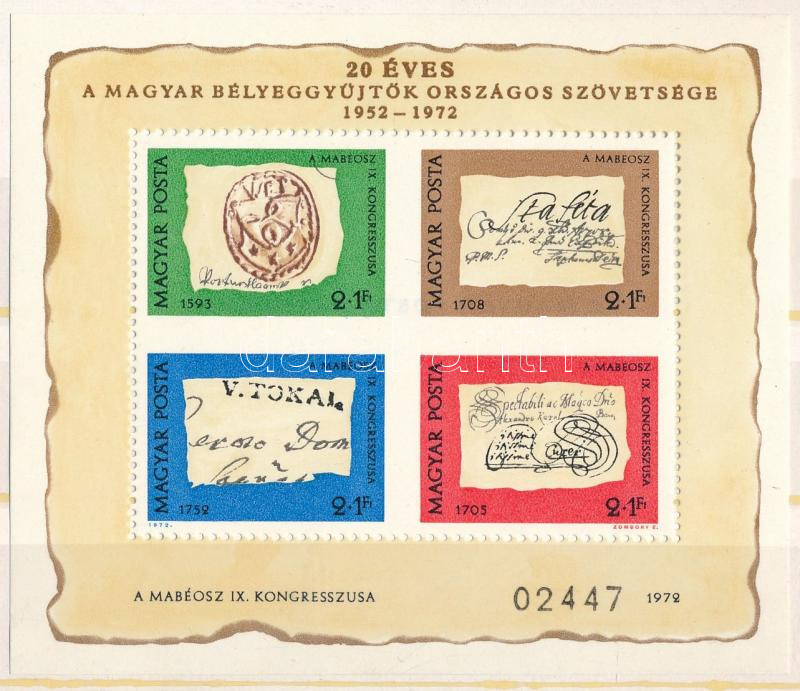 1972 Bélyegnap (45.) blokk "A MAGYAR POSTA AJÁNDÉKA" hátoldali felirattal (30.000)