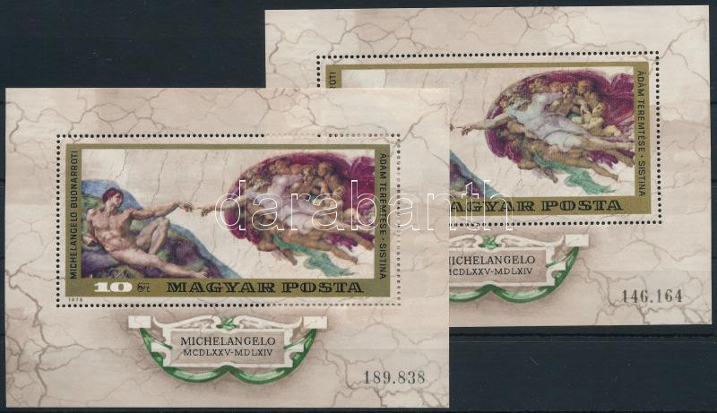 1975 Festmény (XIV.) - Michelangelo 2 db blokk, vékony és vastag sorszámmal