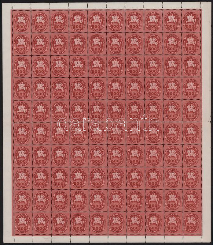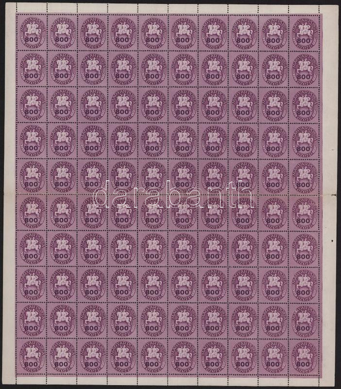1946 Lovasfutár 500 ezer P + 800 ezer P hajtott ívek, mindkettőben a "G" betű felső szárán fehér folt lemezhiba