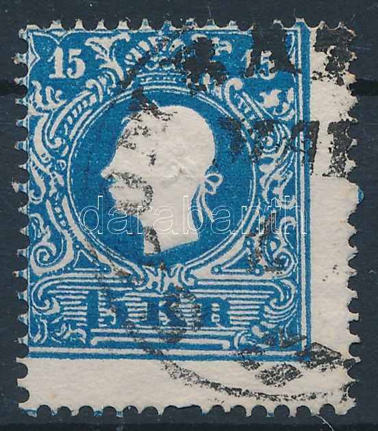 1858 15kr erősen eltolódott fogazással / 15kr with shifted perfs.