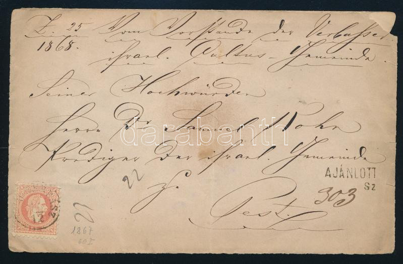 1867 Levél előlapja 5kr bélyeggel "U-VERBÁSZ" (Gudlin 300p)