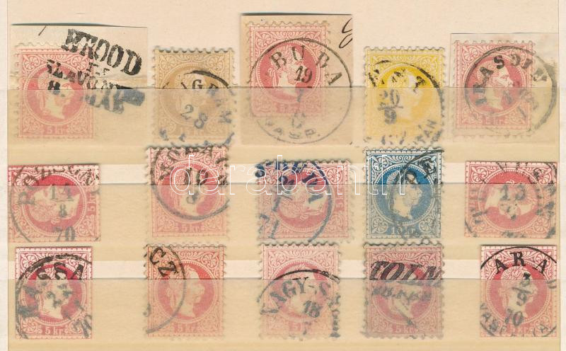 1867 11 db bélyeg és 3 díjjegy kivágás közte szép bélyegzések