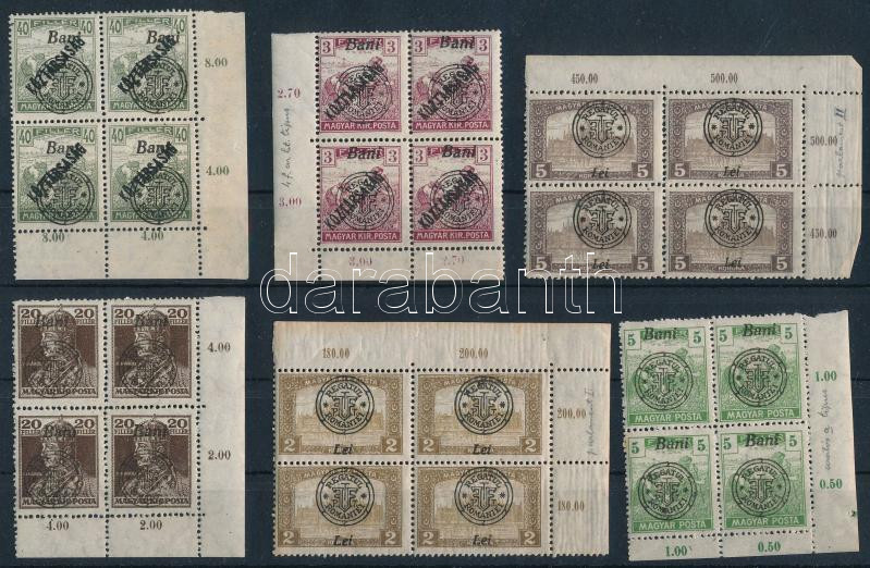 Nagyvárad 1919 6 klf összefüggés, benne különféle altípusok, lemezhibák. Bodor vizsgálójellel (5f rozsda / stain)