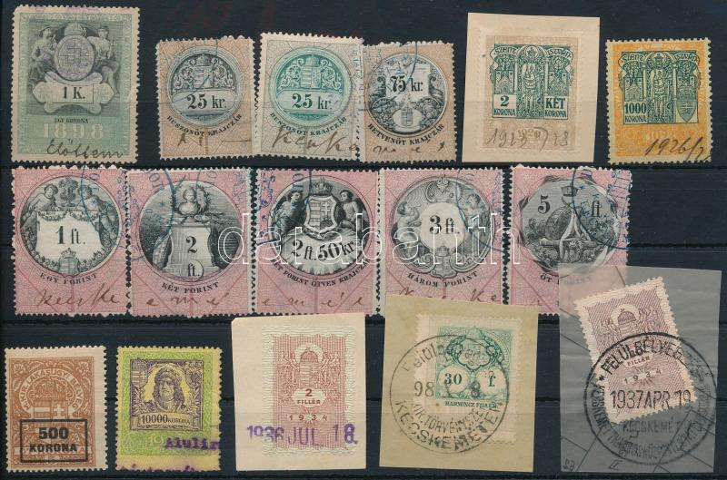 16 db Okmány és Illetékbélyeg közepes stecklapon