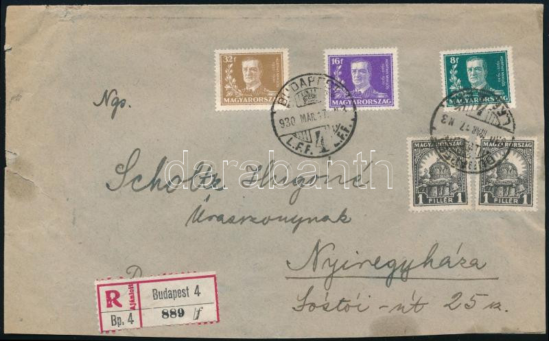 1930 Ajánlott levél 5 db bélyeggel Budapestről Nyíregyházára