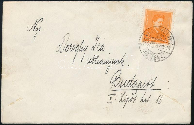 1937 Helyi levél Arcképek 2f bérmentesítéssel "BUDAPEST / ORSZÁGHÁZ"