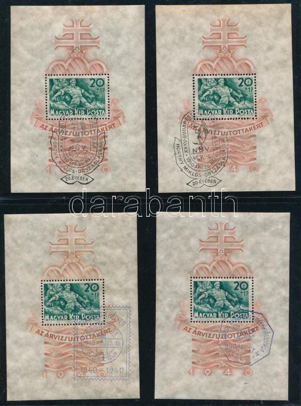 1940 Árvíz I. 4 db blokk alkalmi bélyegzéssel